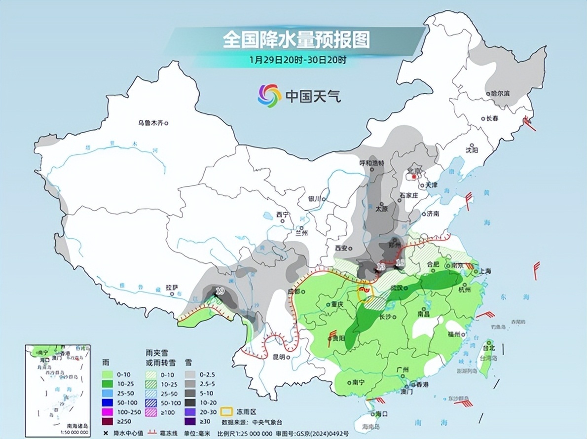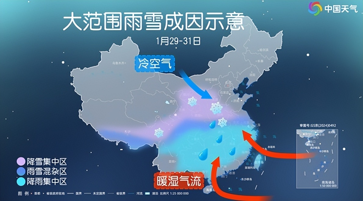 接下来需要把关注投向雨雪第二阶段——29日至31日中东部大范围雨雪过程。